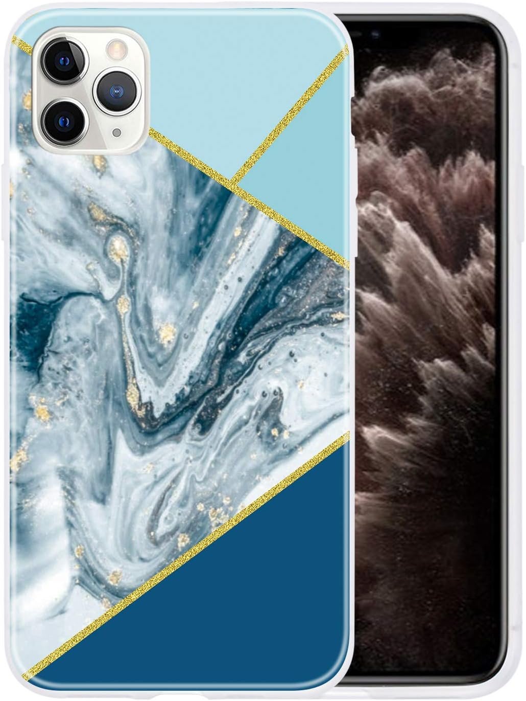 Cover Compatibile per iPhone 12 PRO Max Silicone Marmo con Disegni Motivo Diamante Gomma Antiurto Ultrasottile Case Ultra Slim Resistente Bumper Custodia Uomo Donna Blu