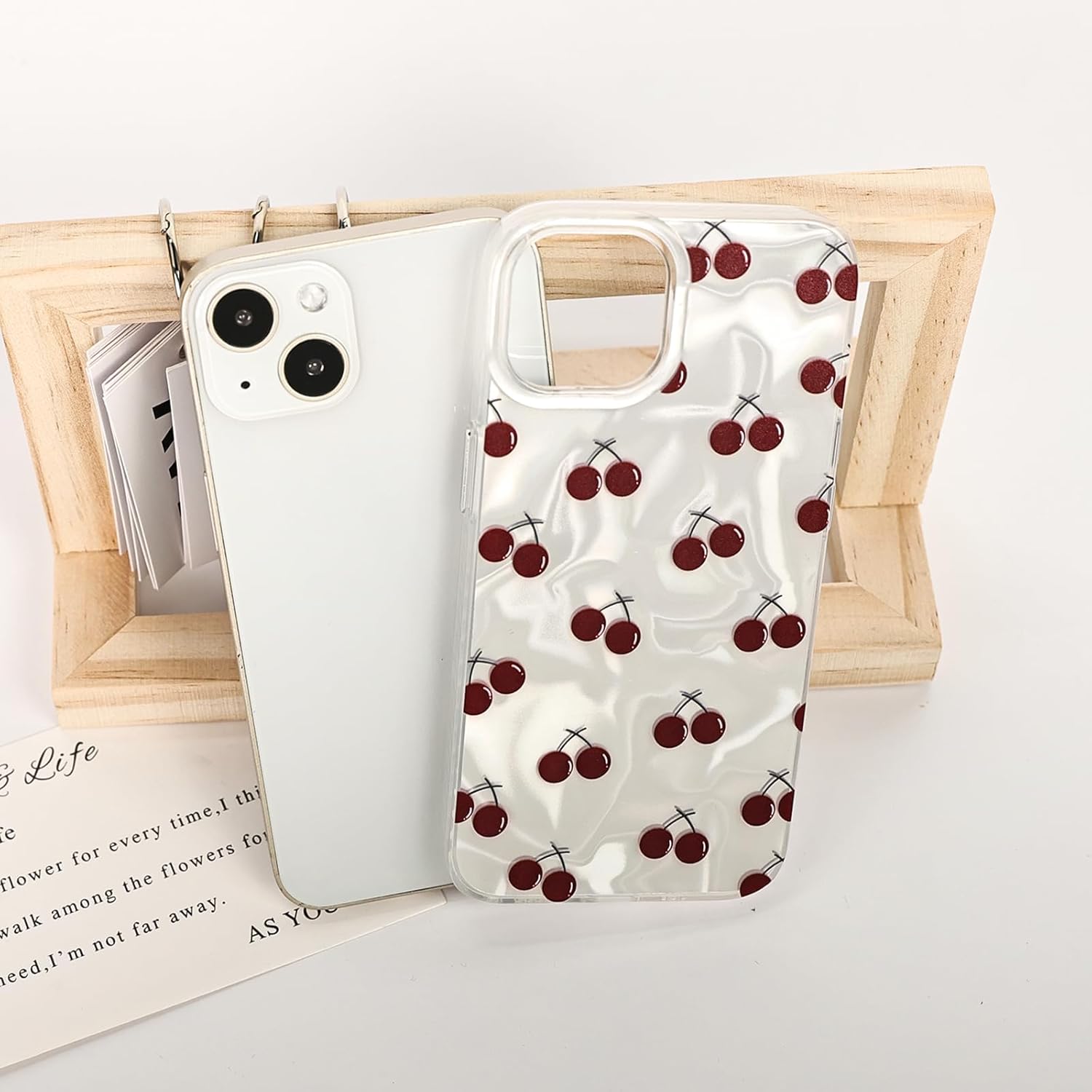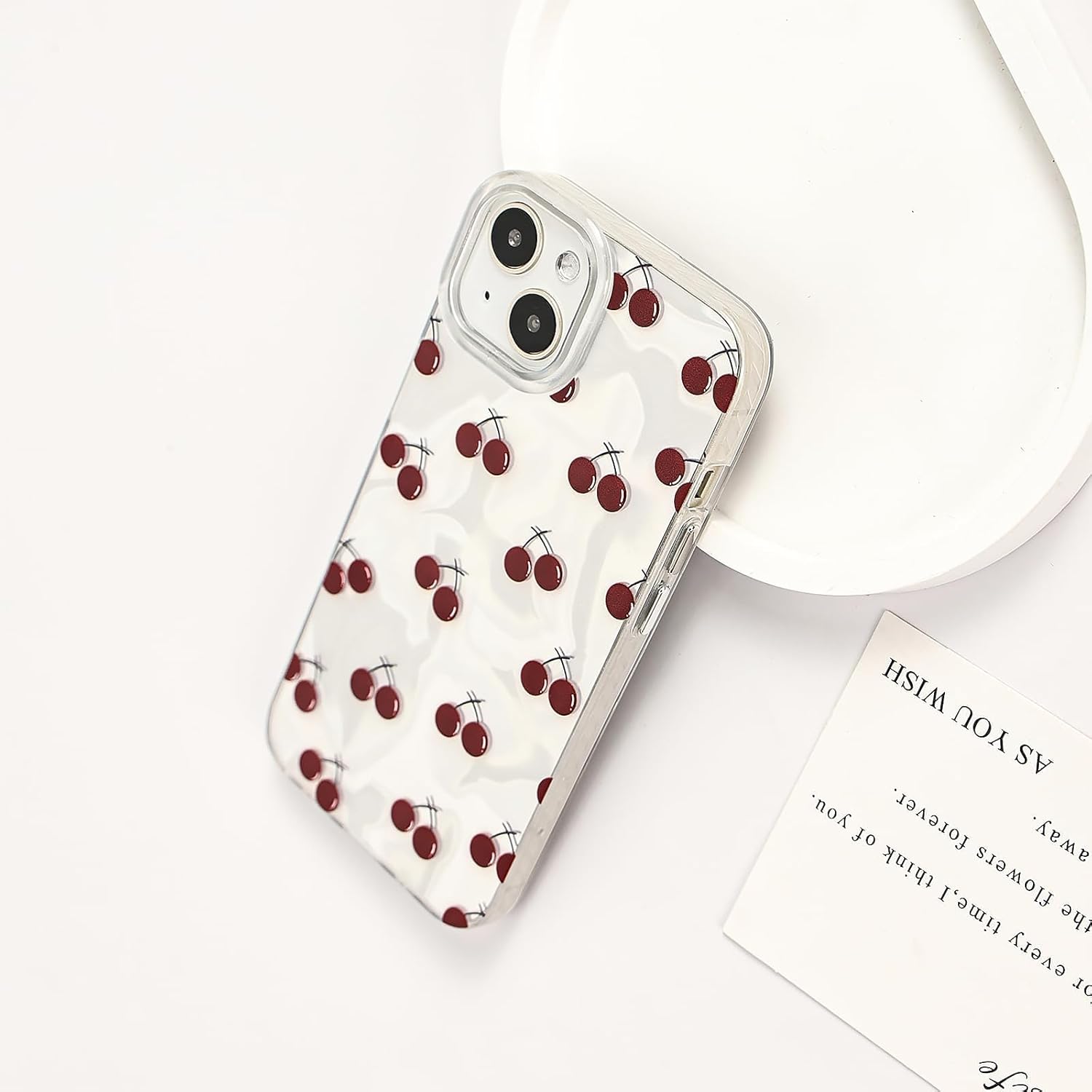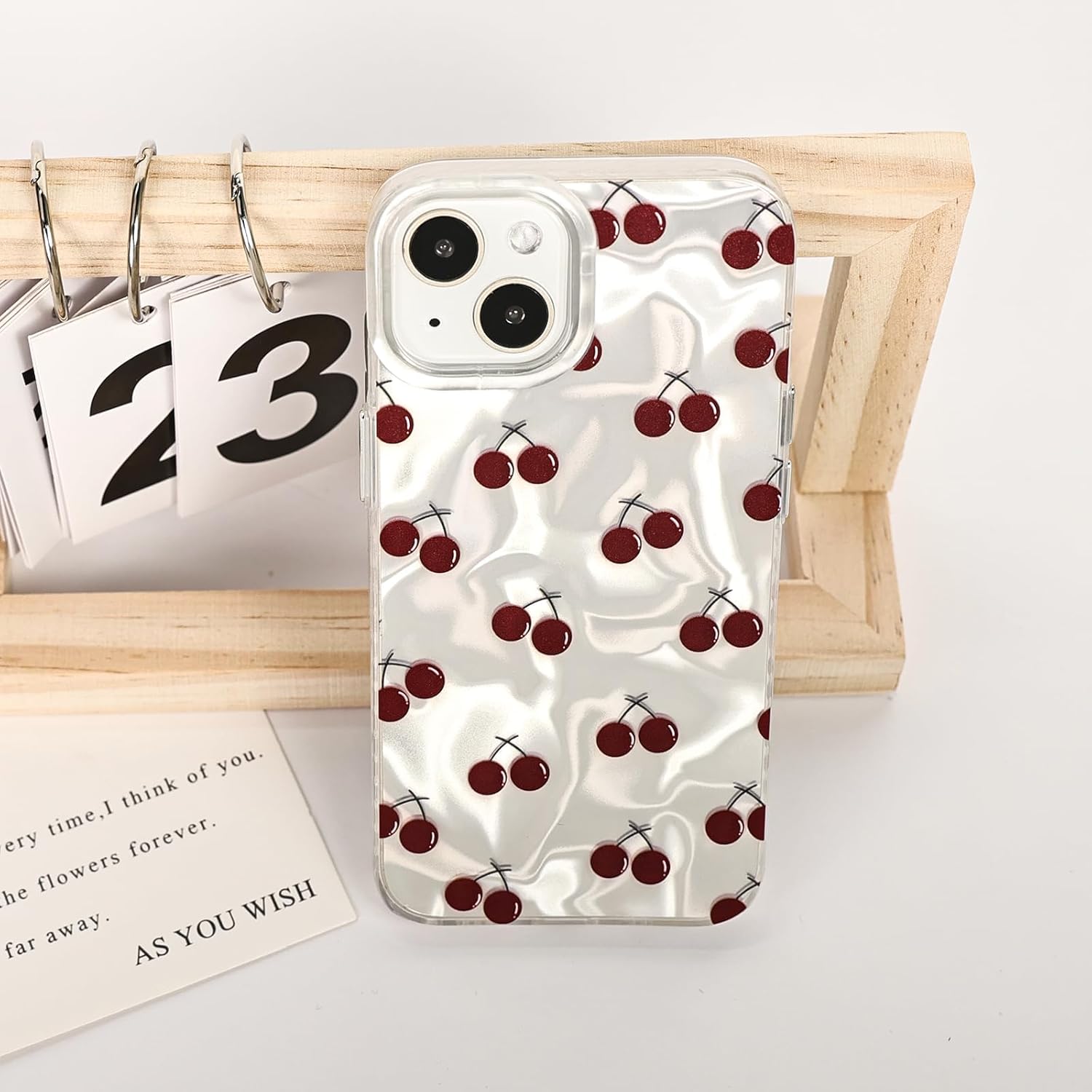 Compatibile con iPhone 15 stampato Cherry Silver Phone Case, antiurto morbido TPU protettivo per iPhone Custodie Phone Cover