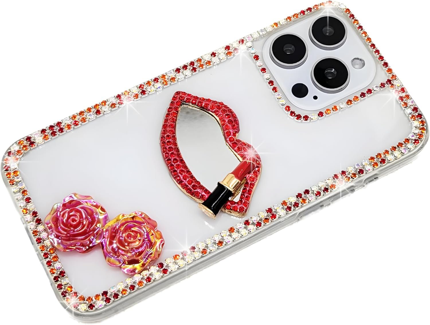 Custodie per iPhone 7 Plus Custodia Bling Diamante 3D Lussuoso Glitter Cristallo Strass Catena Laterale Labbra Specchio Cover (Rosso)