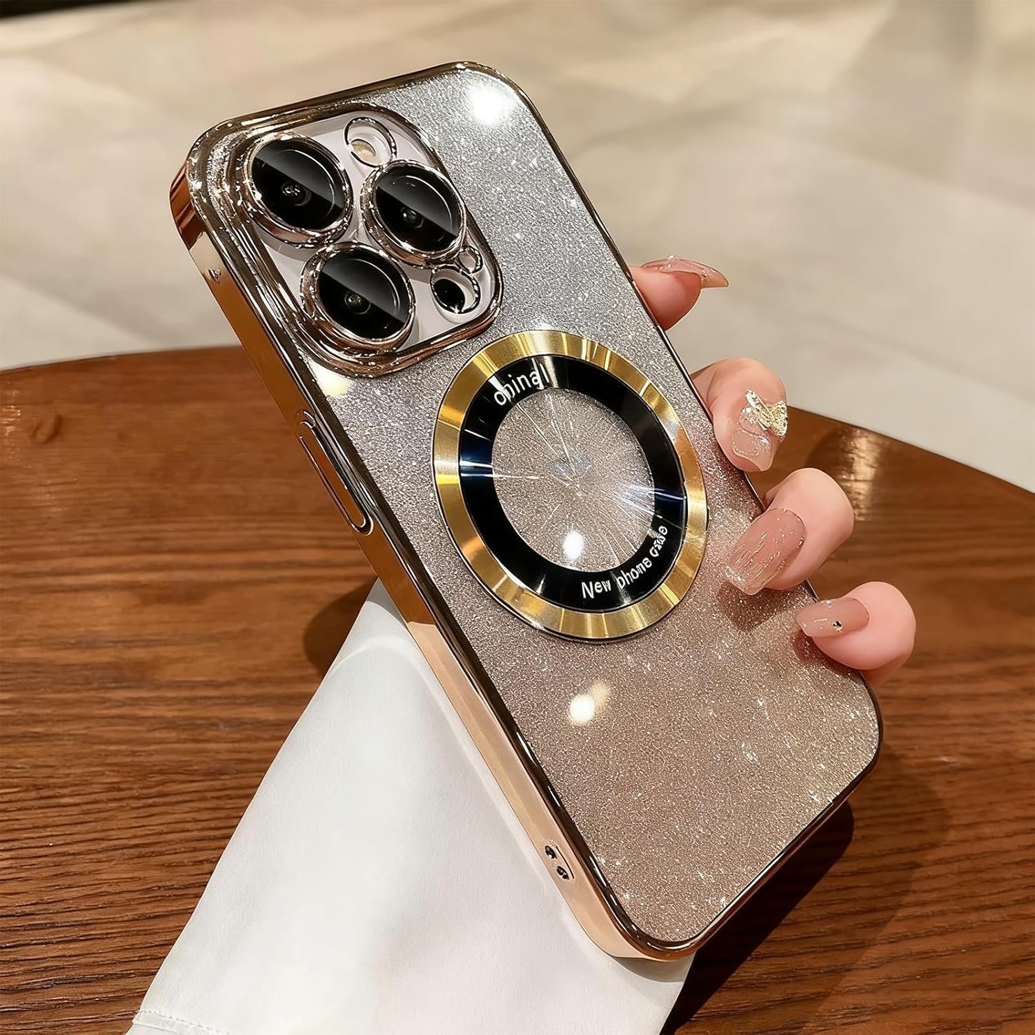 Custodia magnetica glitterata compatibile con iPhone 11 Pro, protezione per fotocamera con obiettivo in vetro, vista logo, custodia rigida di lusso per iPhone 11 Pro, per donne e uomini, copertura